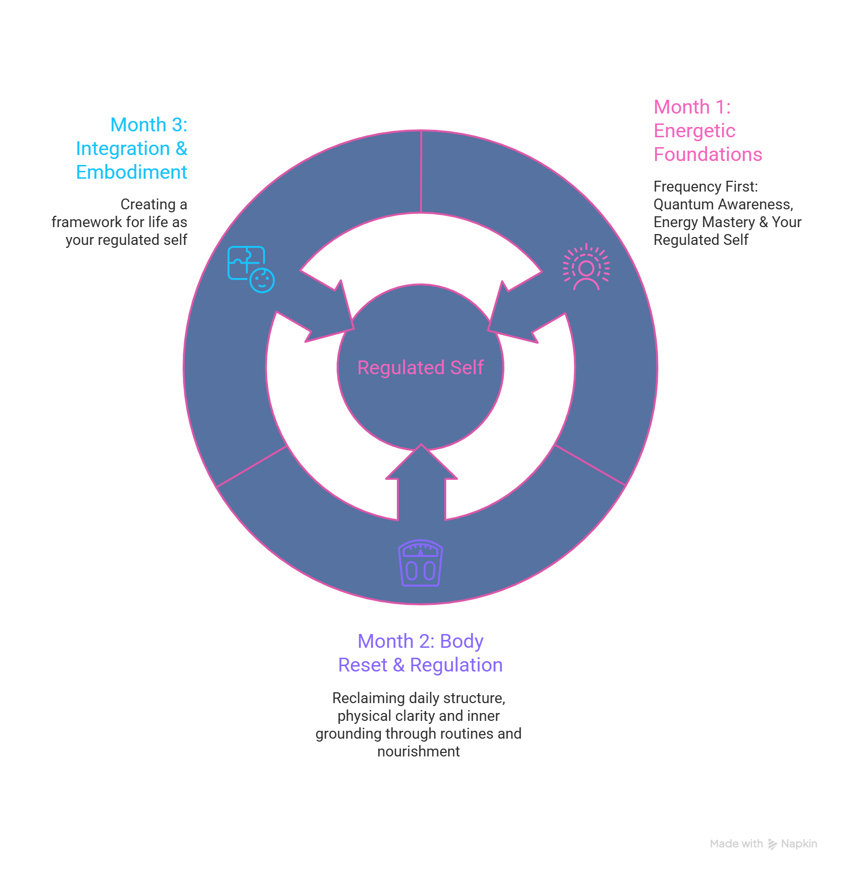 We dive into the principles of energy mastery, quantum field awareness & entanglement; Understanding trauma as energetic, cellular memory & the body as your messenger; Stepping into your Regulated Self